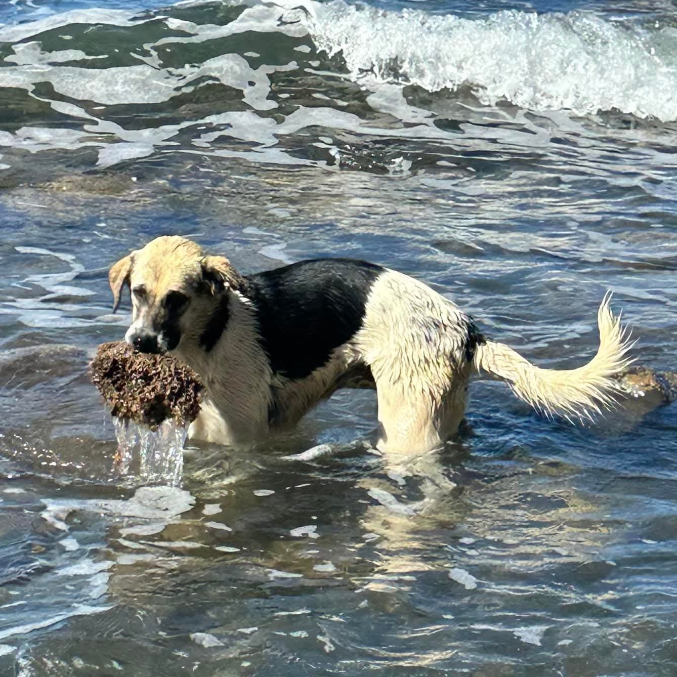 Agatha sucht ihren Felsen in der Brandung.