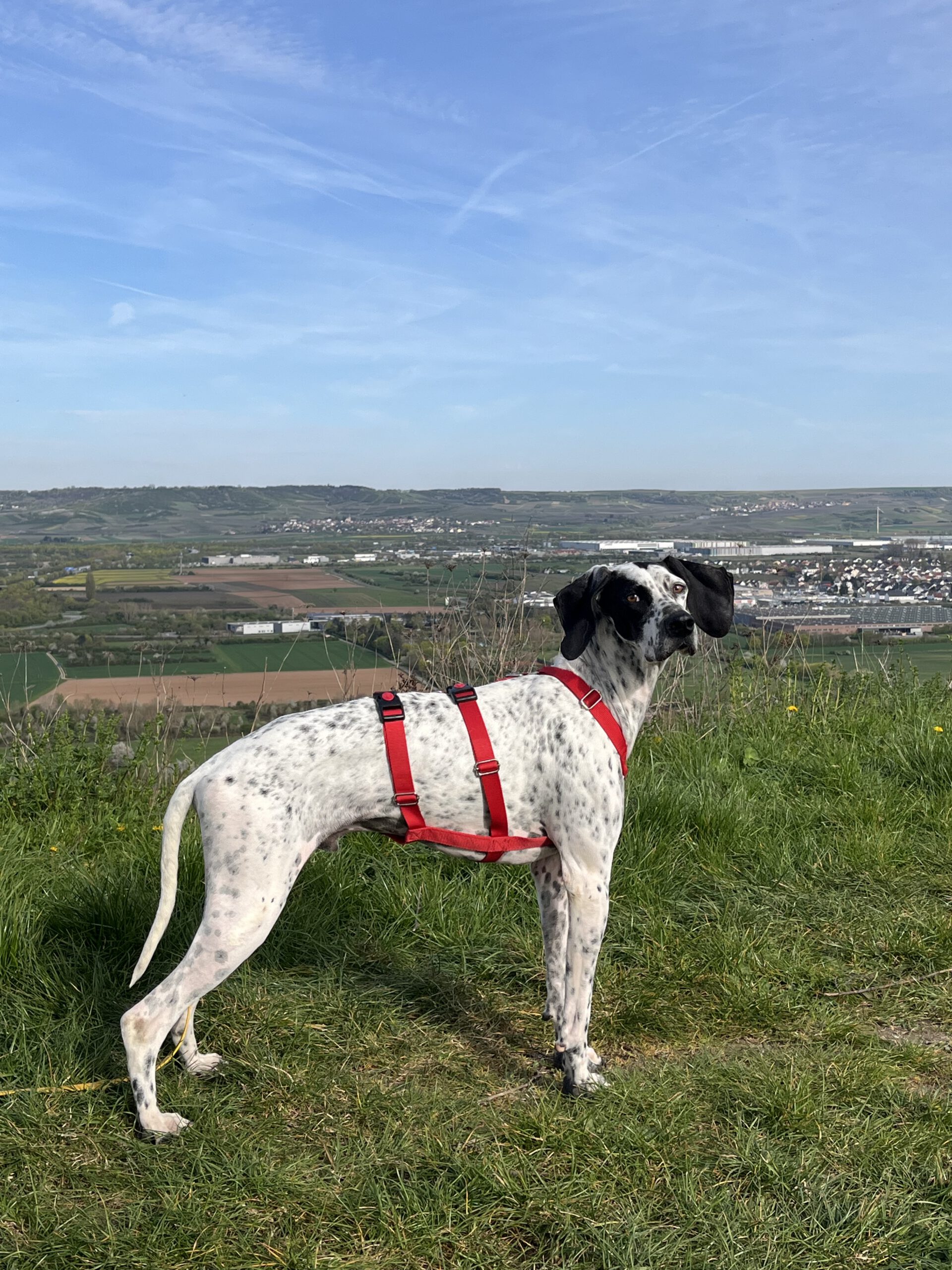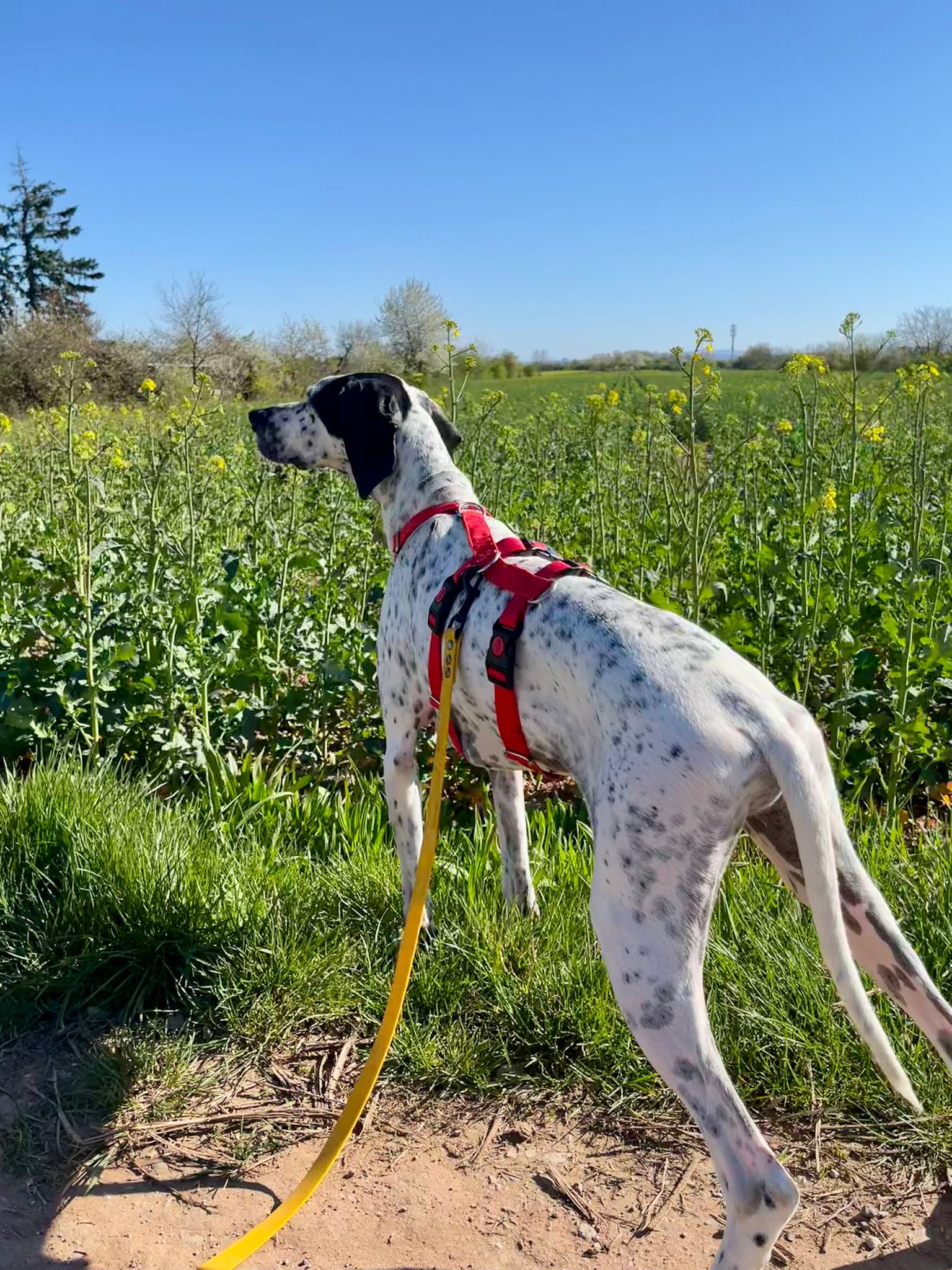 Draußen merkt man, dass noch vieles neu für ihn ist. Umweltreize wie Autos, Motorräder oder Busse kannte er bisher nicht, weshalb er hier noch etwas unsicher reagiert und sich leicht ablenken lässt. Mit Geduld und liebevoller Begleitung wird er aber auch hier sicher weiter dazulernen.