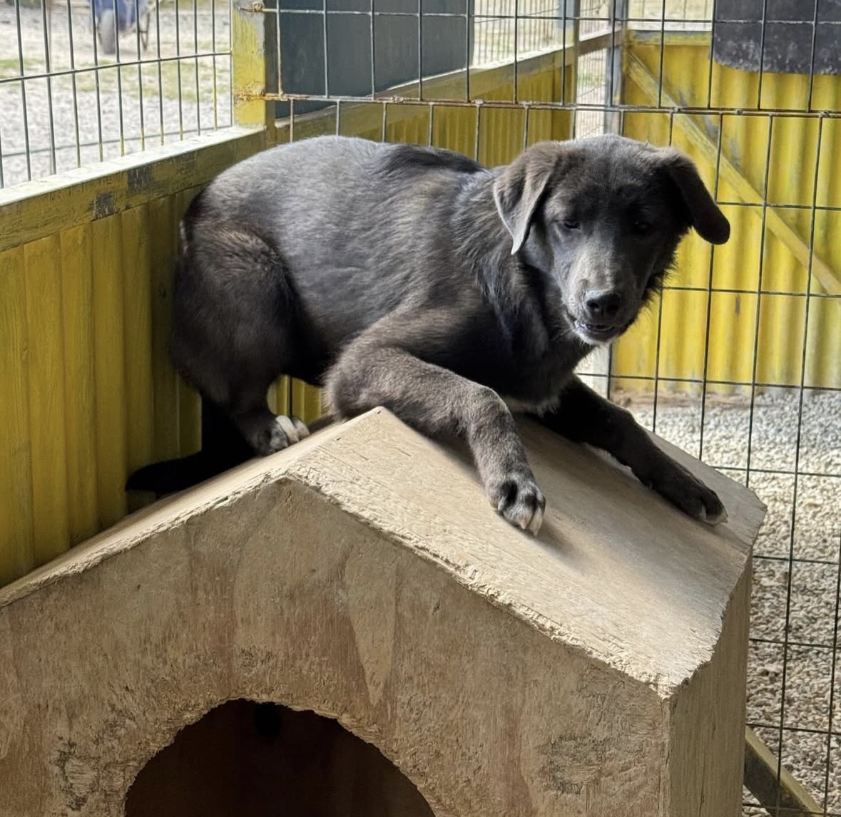 Bloom ist eine zarte, anthrazitfarbene Hündin mit einer Schulterhöhe von ca. 50 cm und einem Gewicht von etwa 18-20 kg. Sie kam schon als Welpe gemeinsam mit ihren zehn Geschwistern in die Auffangstation auf Santorini. Nachdem ihre engsten Schwestern Blue und Bella nach Deutschland reisen durften, musste sich Bloom neu orientieren und schloss sich ihren anderen Geschwistern mehr an. Gemeinsam mit ihren Geschwistern hat sich im Shelter-Alltag eine eigene Gruppendynamik entwickelt und Bloom wurde durch die mangelnde regelmäßige Ansprache und dem fehlenden Bezug zum Menschen zu einer skeptischen und sehr vorsichtigen Hündin.