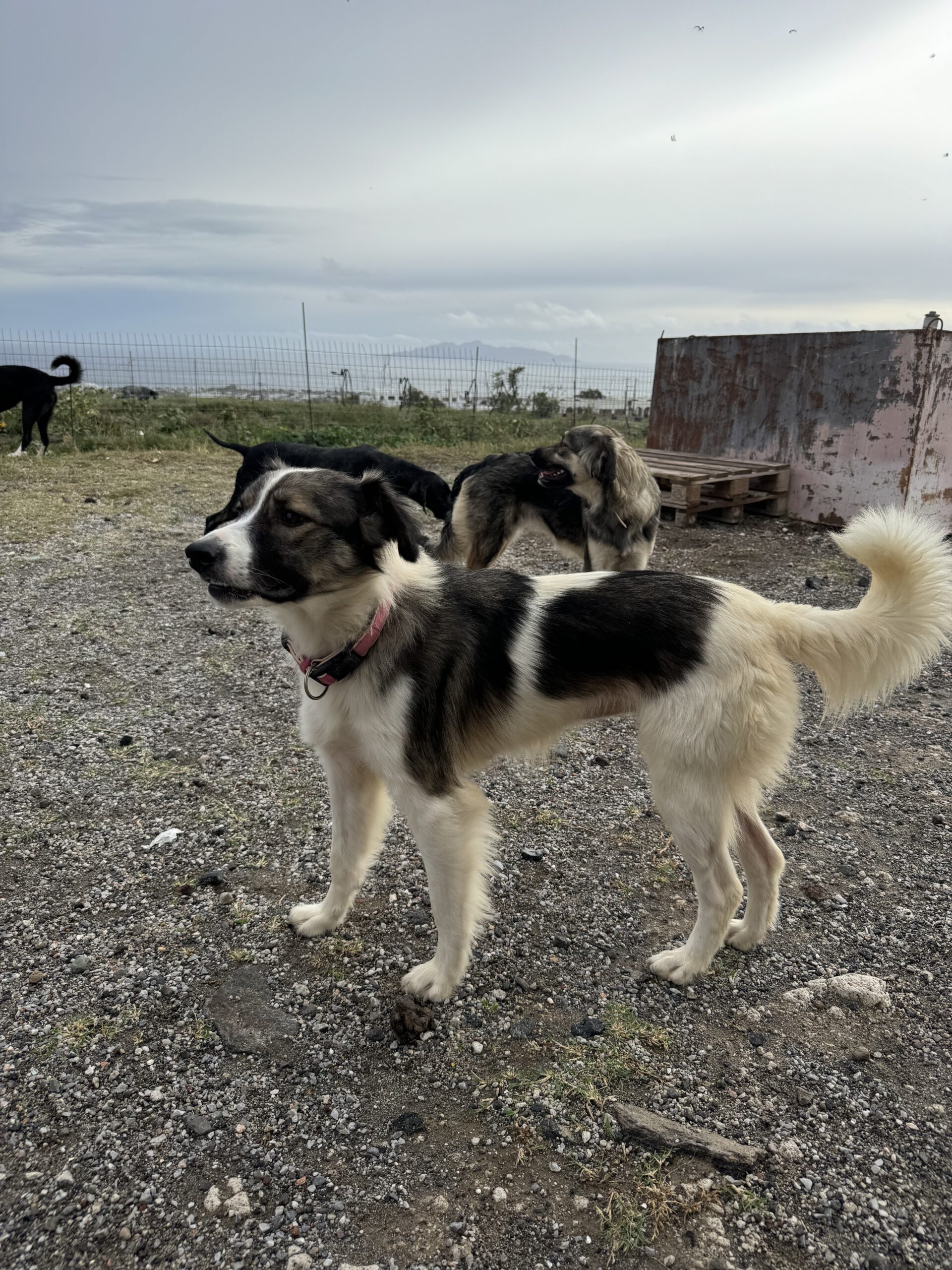 Blossom ist eine junge Herdenschutz-Mix-Hündin mit einer Schulterhöhe von ca. 45–50 cm und einem Gewicht von etwa 20 kg. Sie stammt aus einem Wurf voller lebhafter Geschwister – und gerade Blossom bleibt oft im Hintergrund, weil sie von Natur aus schüchtern und zurückhaltend ist. Im hektischen Shelter-Alltag geht sie manchmal ein wenig unter, während die selbstbewussteren Hunde mehr Aufmerksamkeit bekommen.