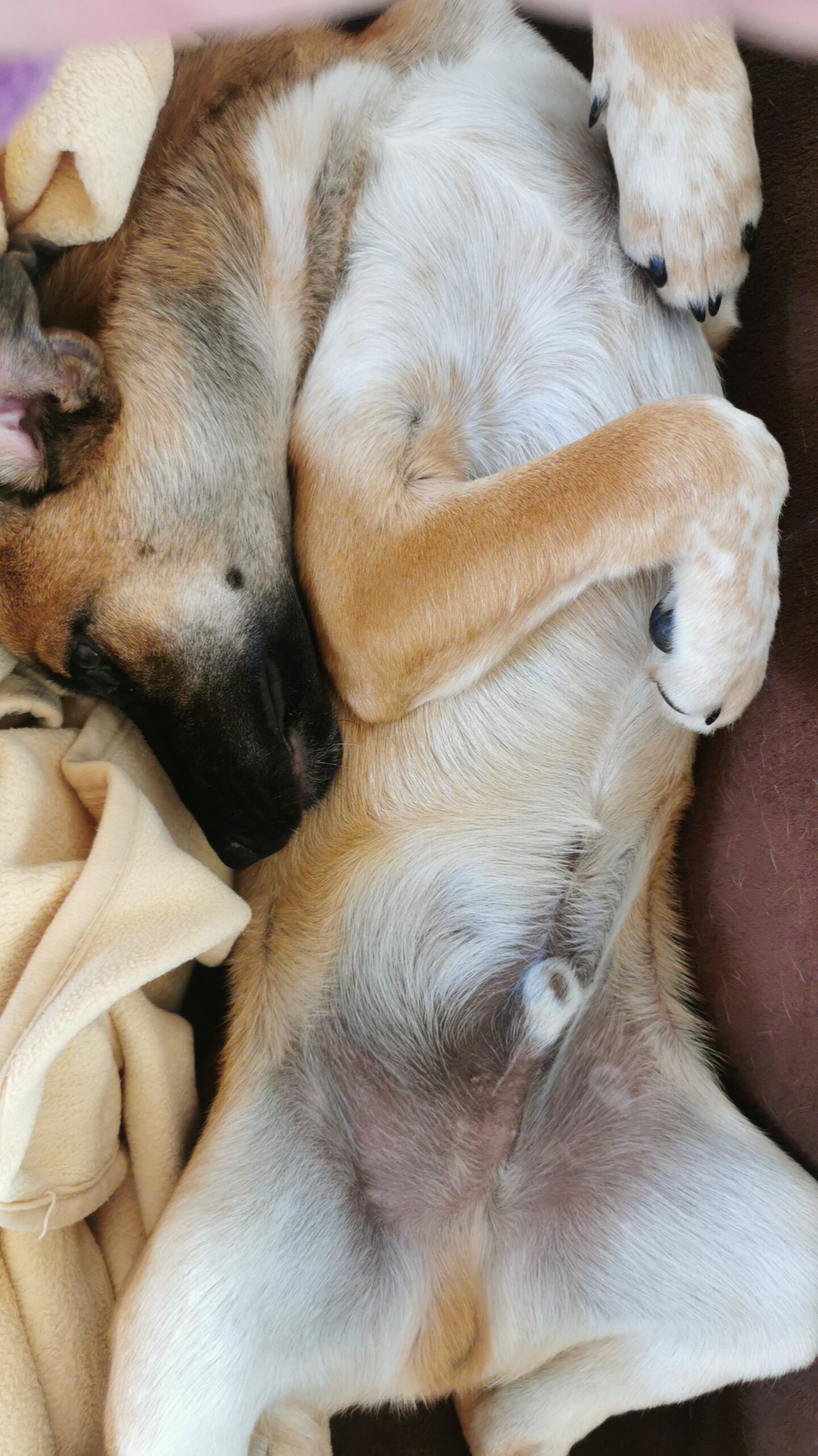 Tierfreunde haben die streunende Mutter der Kleinen beobachtet und gesehen, dass sie wohl Welpen haben muss. Diese wurden glücklicherweise gefunden und eingesammelt. Die Mutter konnte leider nicht eingefangen werden. Das war Anfang August, die Welpen ca. 2 Monate alt und sehr hungrig. Acht Bäuche zu füllen war für die Mutter doch zu viel.