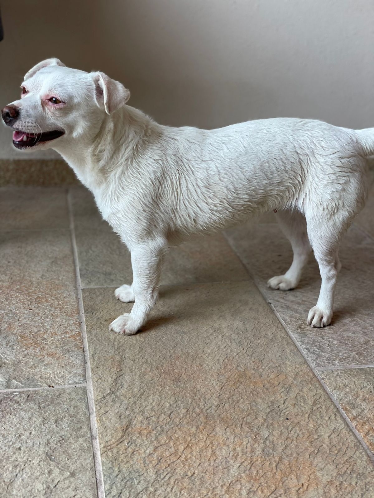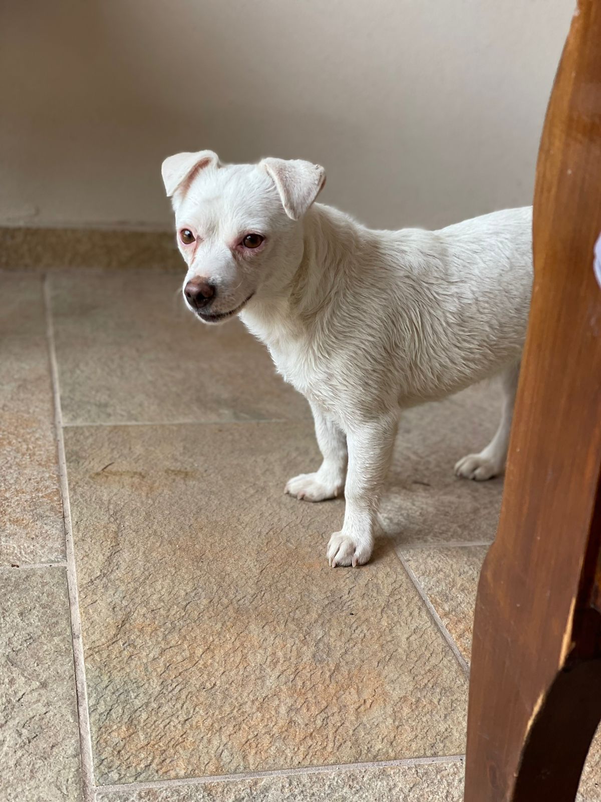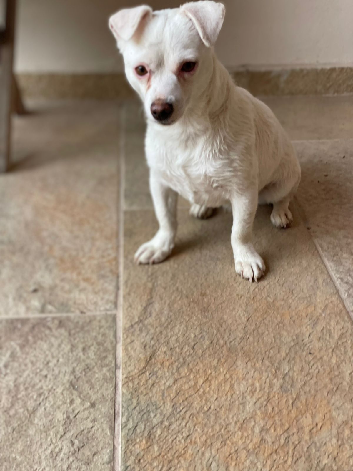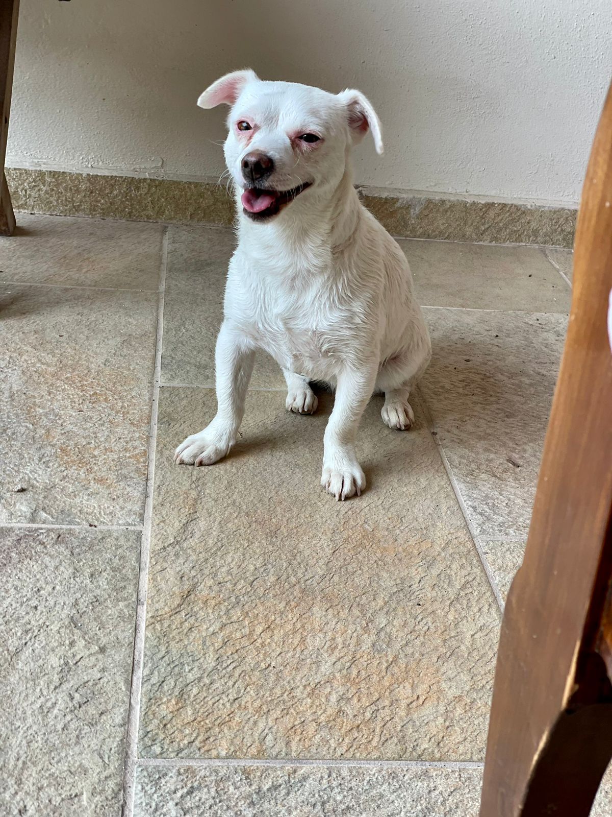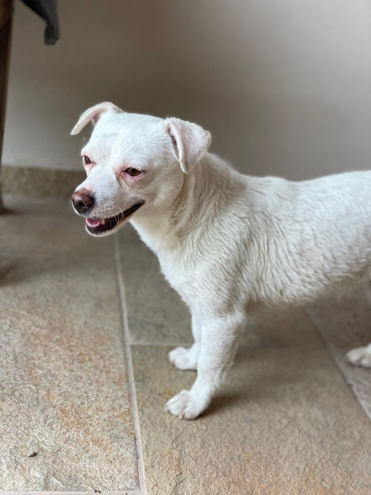 Deshalb holten wir Fibi im Dez.`22 nach Deutschland und sie wurde in einer Tierklinik komplett untersucht. Diagnose: Fibi leidet an einer angeborenen Augendegeneration und sieht nur noch schemenhaft, außerdem hat sie noch eine leichte, auch angeborene neurologische Störung, die ein schwankendes Gangbild ausmacht und bei hohem Stresspegel zu „klappernden Zähnen“ führt. Ansonsten ist Fibi eine liebenswerte Hündin, die zwar keine großen Wanderungen machen und schlecht Treppen laufen kann, aber ansonsten kaum in ihrem Lebensraum eingeschränkt ist.