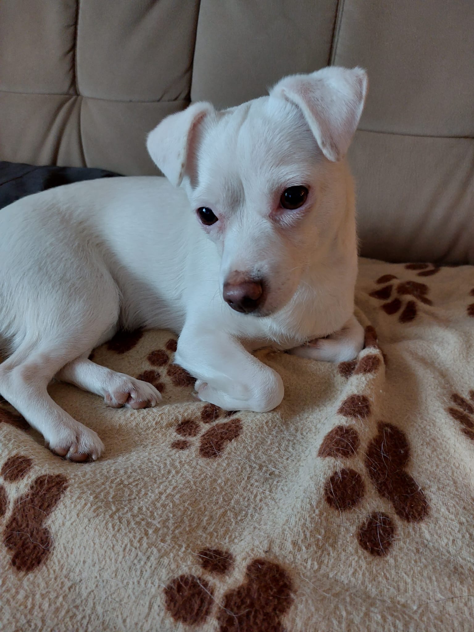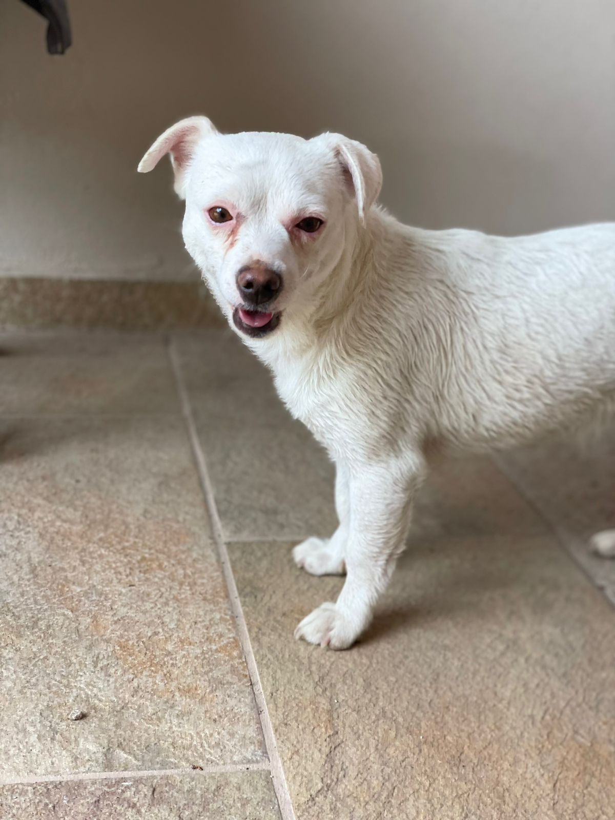 Ich bin Fibi, geschätzte 3 Jahre alt. Ich leide an einer Ataxie, bin fast blind und geistig behindert. Bisher wohnte ich als Zweithund in meiner Familie, doch meine Kumpeline ist leider verstorben und seitdem bin ich ziemlich orientierungslos. Ich mag kleine Kinder nicht so gerne, die machen mir Angst. Katzen, die ich bisher ganz gerne hatte, mag ich jetzt auch nicht mehr. Ich suche deshalb ein neues Zuhause, indem schon ein Hund lebt, der mir ein bisschen Sicherheit geben kann. Ich bin eine sehr dankbare, liebe Hündin, wenn man ein bisschen Geduld mit mir hat.