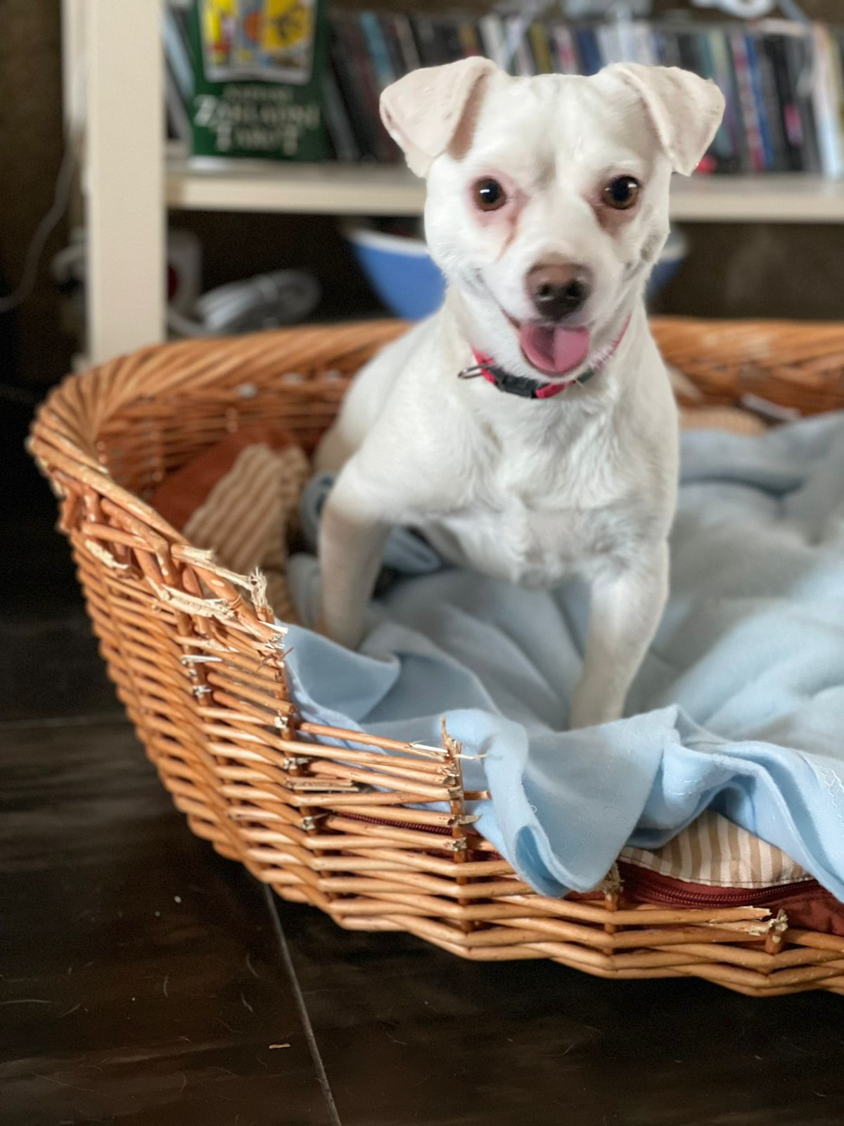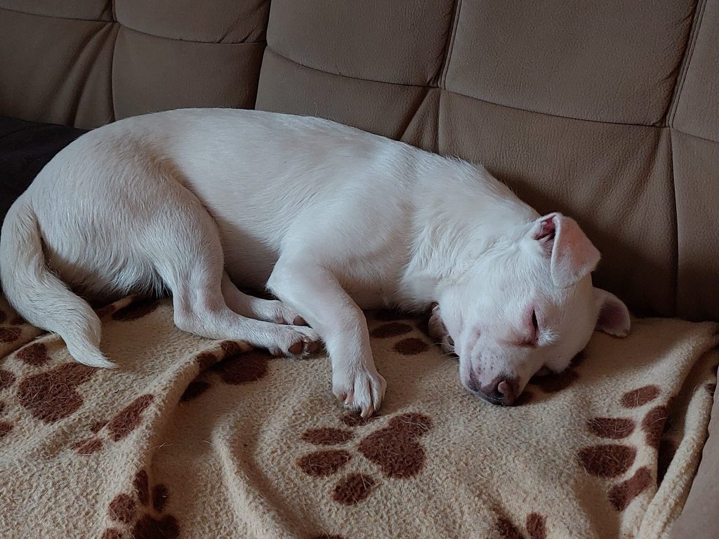So konnte die kleine Hündin aber nicht zurück in die Auffangstation, deshalb nahm sie Renata mit nach Hause. Dort war schon bald klar, etwas sehen kann Fibi, zumindest hell und dunkel erkennt sie wohl. Doch die ideale Unterbringung war das auch nicht, denn Fibi brauchte ein ruhiges Umfeld, damit sie die Umgebung kennenlernen kann und dadurch Sicherheit gewinnt. Außerdem wurde sie durch die spielenden beiden anderen Hunde dort oft angerempelt oder umgerannt.