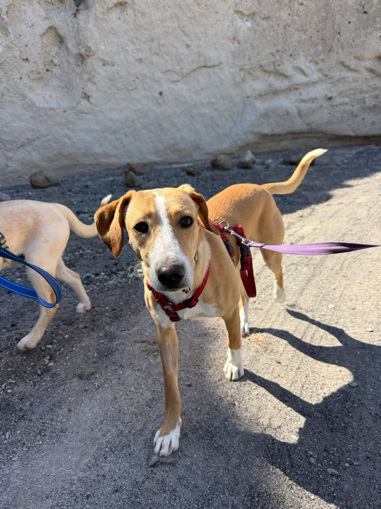 Jessy ist kürzlich mit ihrem Bruder Joey im SAWA-Land angekommen. Die beiden Geschwister sind ungefähr 8 Monate alt. Sie kamen am Flughafen auf Santorini zur Welt und sind dort zusammen aufgewachsen. Das Flughafenpersonal hat die beiden regelmäßig gefüttert, weswegen die beiden zwar vorsichtig, aber an Menschen gewöhnt sind. Weil der Flughafen nicht mehr sicher für die beiden war, hat ein freundlicher Wachmann die Junghunde zu SAWA gebracht.
