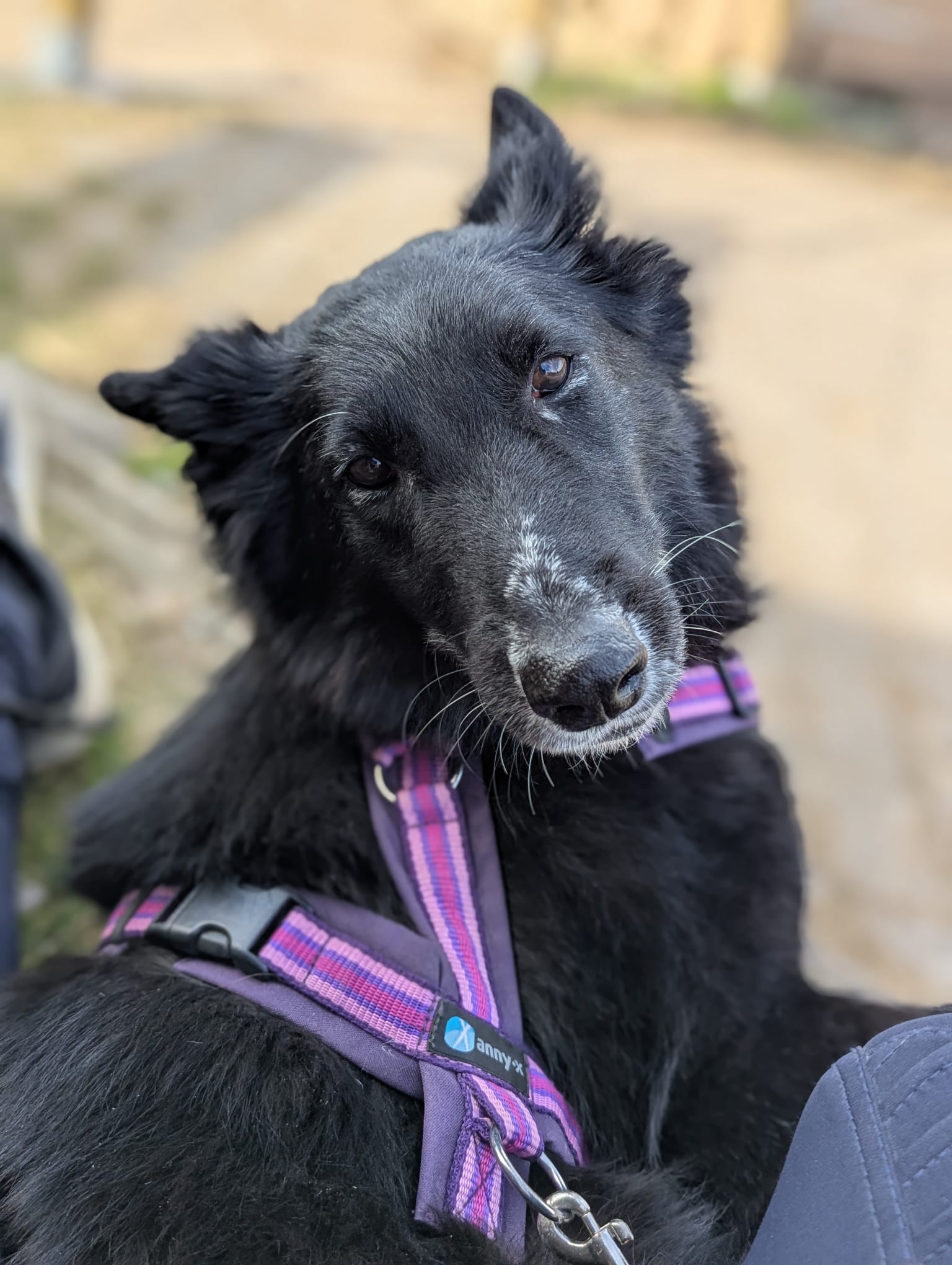 Naomi kam im Februar 2025 von der Insel Santorini hier in Deutschland auf eine Pflegestelle. Sie wurde auf der Insel an der Kette gehalten und entwickelte stereotype Verhaltensweisen. Man vermutet auch, dass sie einen Autounfall hatte und musste hier operiert werden. Zusätzlich leidet sie an Arthrose, so dass sie für immer auf Schmerzmittel angewiesen ist.