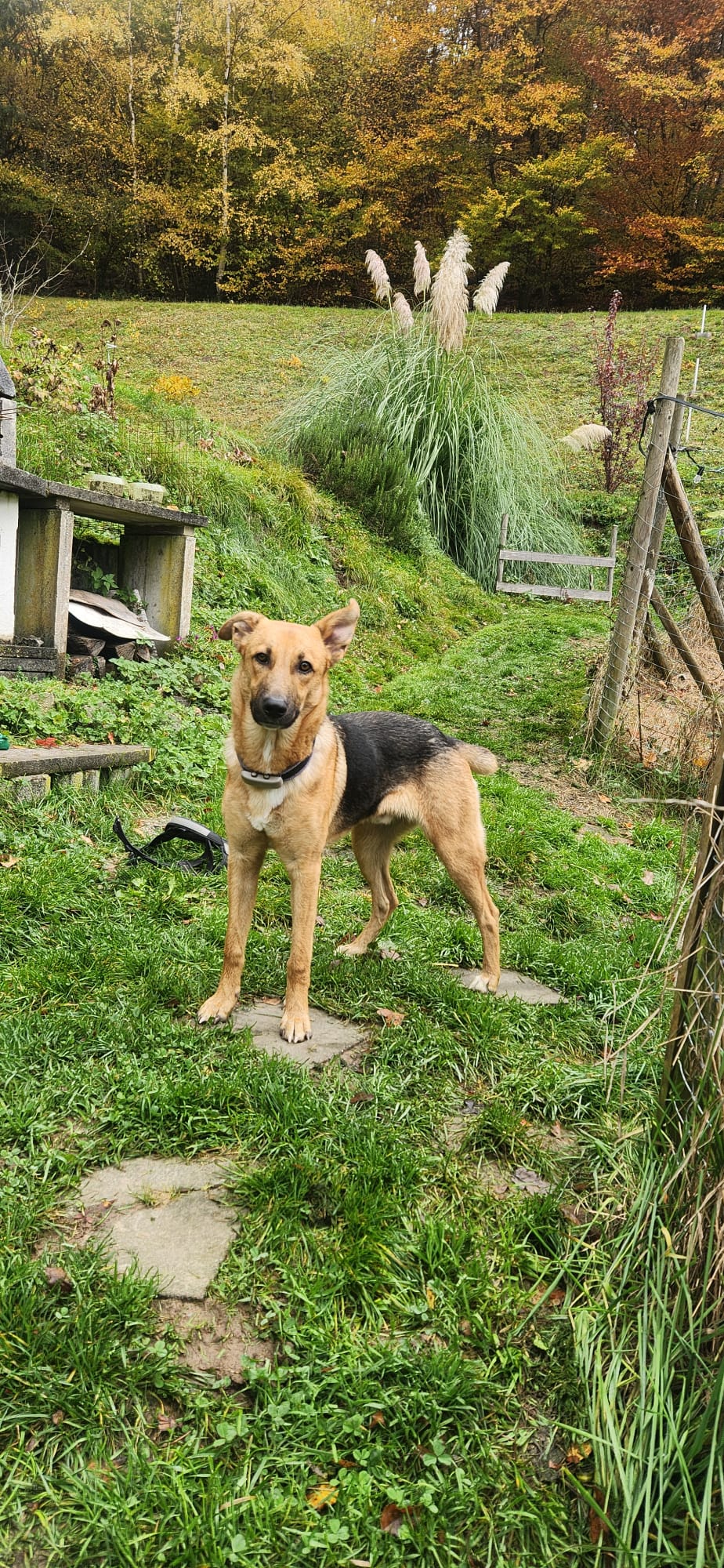 Unser Pumba ist ein etwa 6 Monate alter Schäferhundmix, aktuell noch unkastriert. Er wird voraussichtlich ca. 62 cm Schulterhöhe erreichen, bleibt dabei aber eher zierlich gebaut. Seine verkürzte Rute macht ihn zu einem echten Unikat!