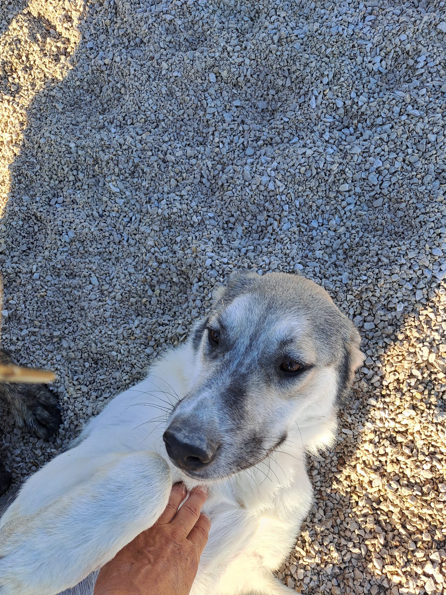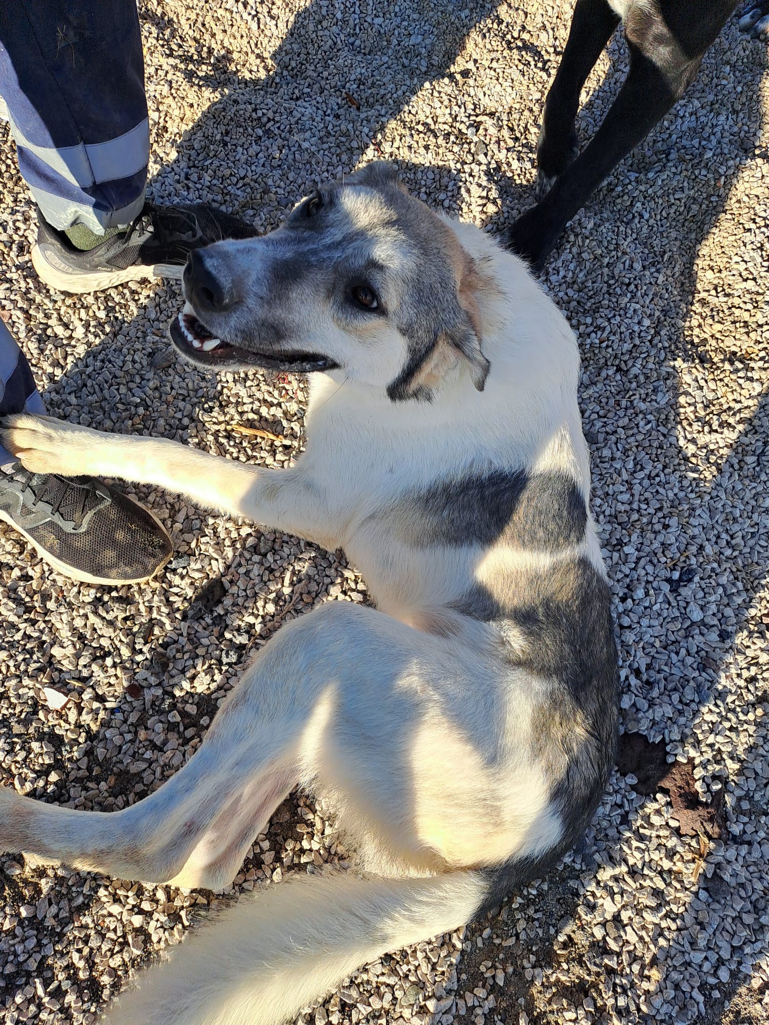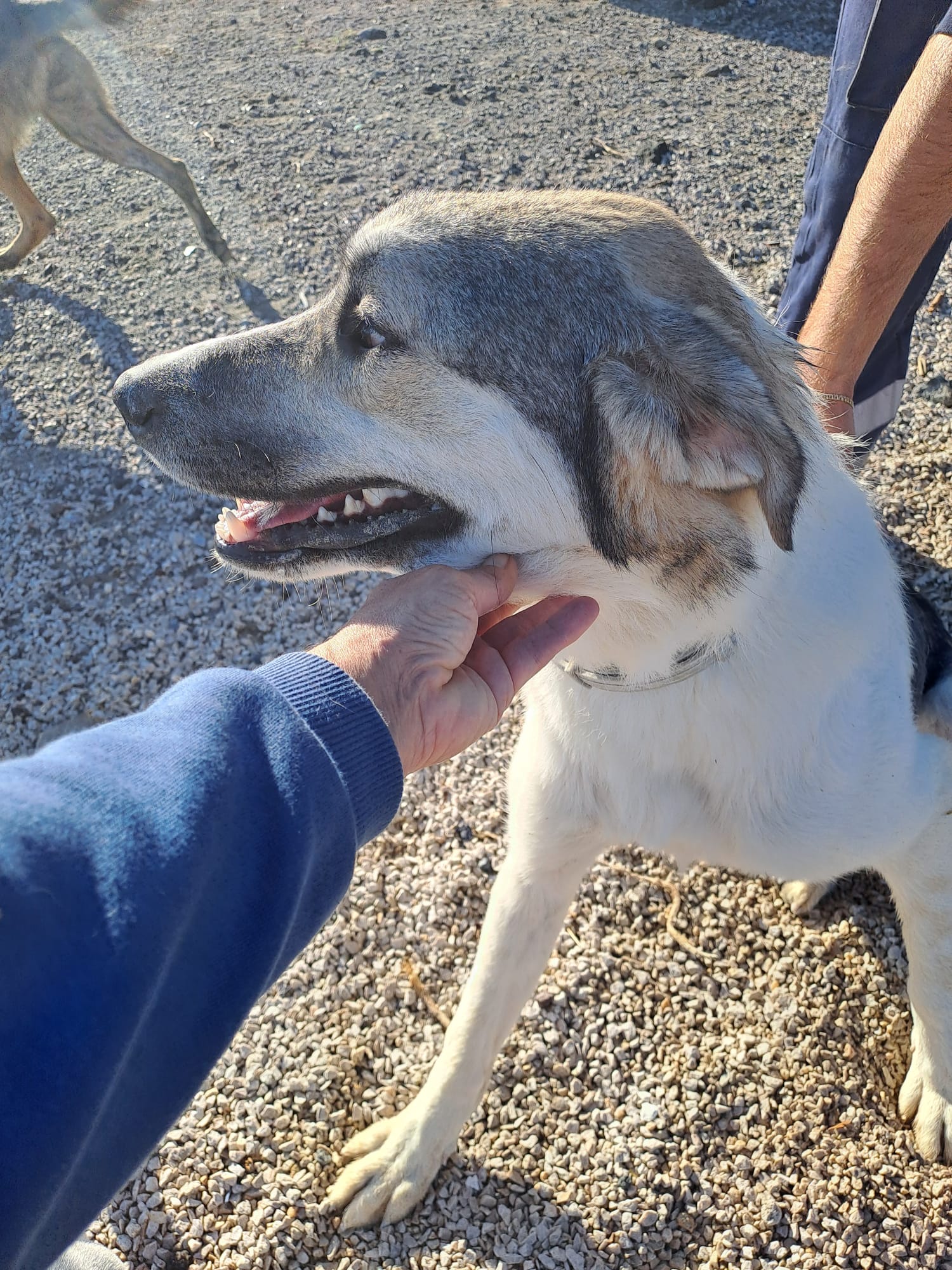 Rigas sieht aus wie ein Herdenschutzhund, aber sofort merkt man, wie super freundlich und menschenbezogen er ist. Er zeigt keinerlei Aggression, ganz im Gegenteil, er sucht die Nähe und Liebe von Menschen. Egal wer in die Auffangstation der Gemeinde kommt, er oder sie wird direkt in sein Herz geschlossen. Immer wieder kommt er zum Schmusen, wirft sich einem vor die Beine, zeigt seinen Bauch. Rigas ist ein ganz freundlicher und offener Hund, der nur gefallen und in der Nähe von Menschen sein möchte. Er ist mit allen anderen Hunden in der Station verträglich und geht Streitigkeiten aus dem Weg. Er ist schmal und hochbeinig und sehr bewegungsfreudig. Ein sehr angenehmes Wesen, nicht aufdringlich, aber verschmust. Rigas kann allein oder auch mit anderen Hunden gehalten werden. Idealerweise von Menschen die bereits Hundeerfahrung haben. Aber kein Muss. Dennoch sollte mal ihn beobachten, ob er möglicherweise Rasse-typische Verhaltensweise entwickelt, wie „sein Rudel“ zu beschützen.