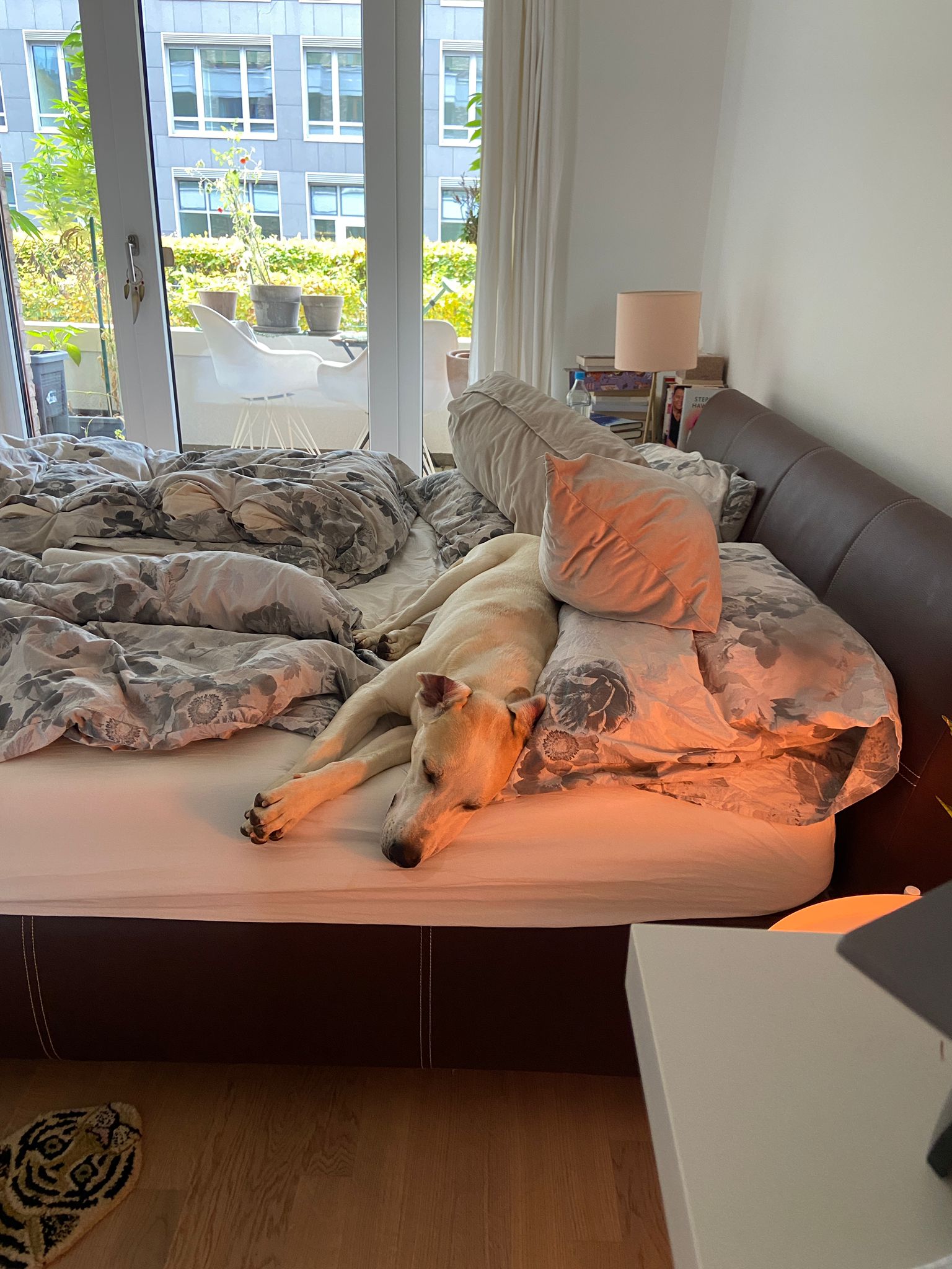 Am besten wäre ein Haushalt (ohne Kinder) etwas ruhiger gelegen mit Zweithund. Stadtgeräusche kennt er jetzt zwar aber entspannter wäre er ausserhalb der Stadt.
