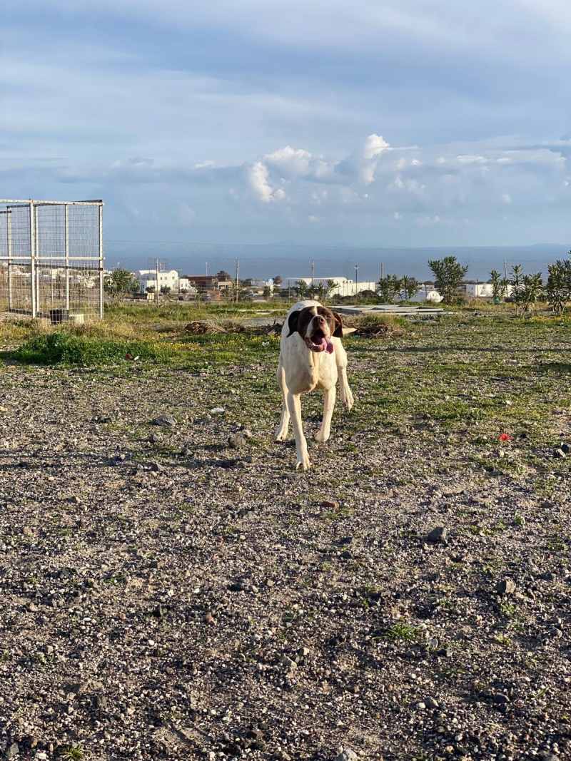 Texas lebte als Straßenhund in Oia. Er hielt sich immer in derselben Gegend auf, doch einige Menschen wollten ihn dort nicht haben und riefen die Polizei. Schließlich wurde er von einem Tierschützer vor Ort eingefangen und in Sicherheit gebracht.