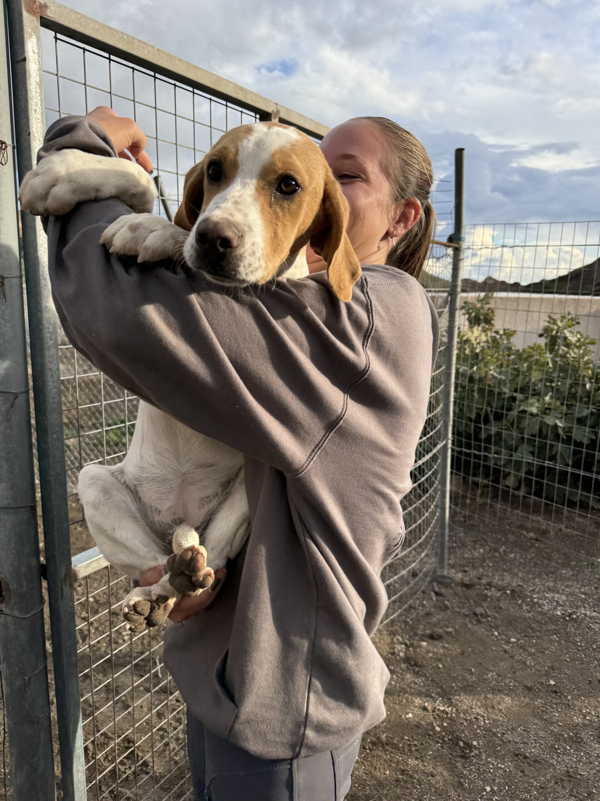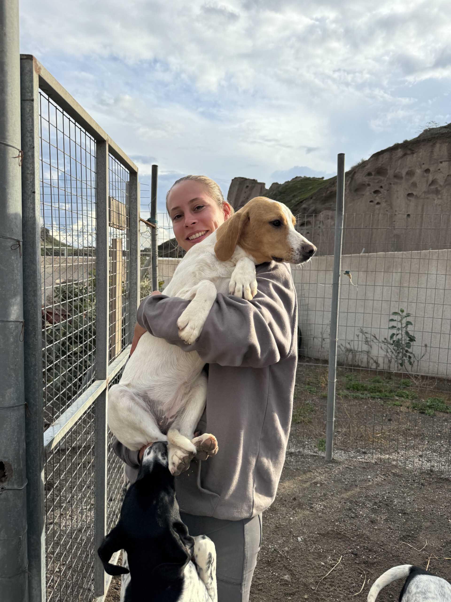 Thelma ist einer der neun Welpen von Thetis. Thetis kam hochschwanger zu SAWA und brachte kurz nach ihrer Ankunft die neun Rabauken zur Welt.